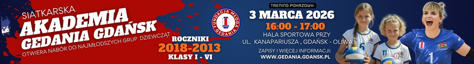 Siatkarska Akademia Gedania Gdańsk zaprasza dziewczynki urodzone w latach 2013–2018 (klasy…