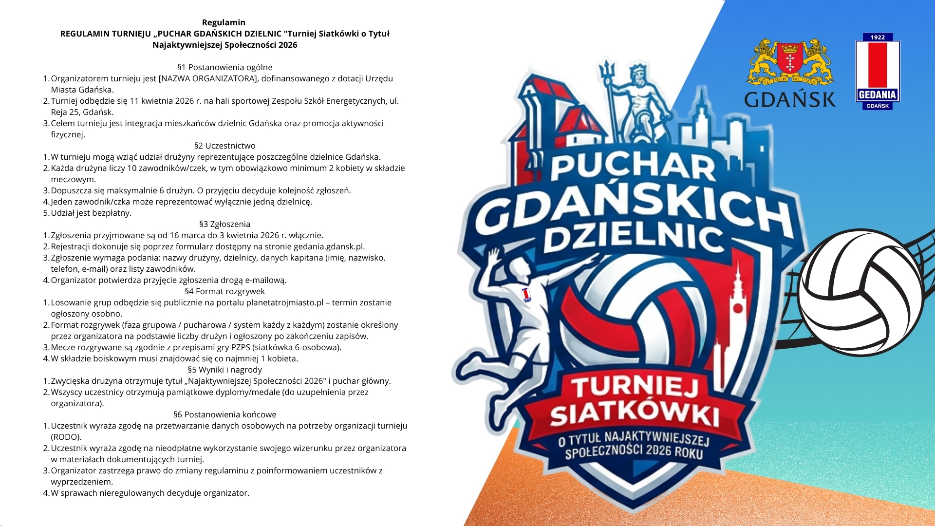 TURNIEJ SIATKARSKI – 11.04.2026 – OFICJALNE INFORMACJE